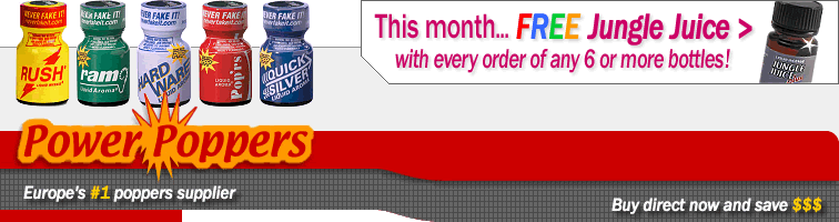 New to poppers? Well, poppers is the popular name for the various alkyl nitrates. Go here for more poppers information >>